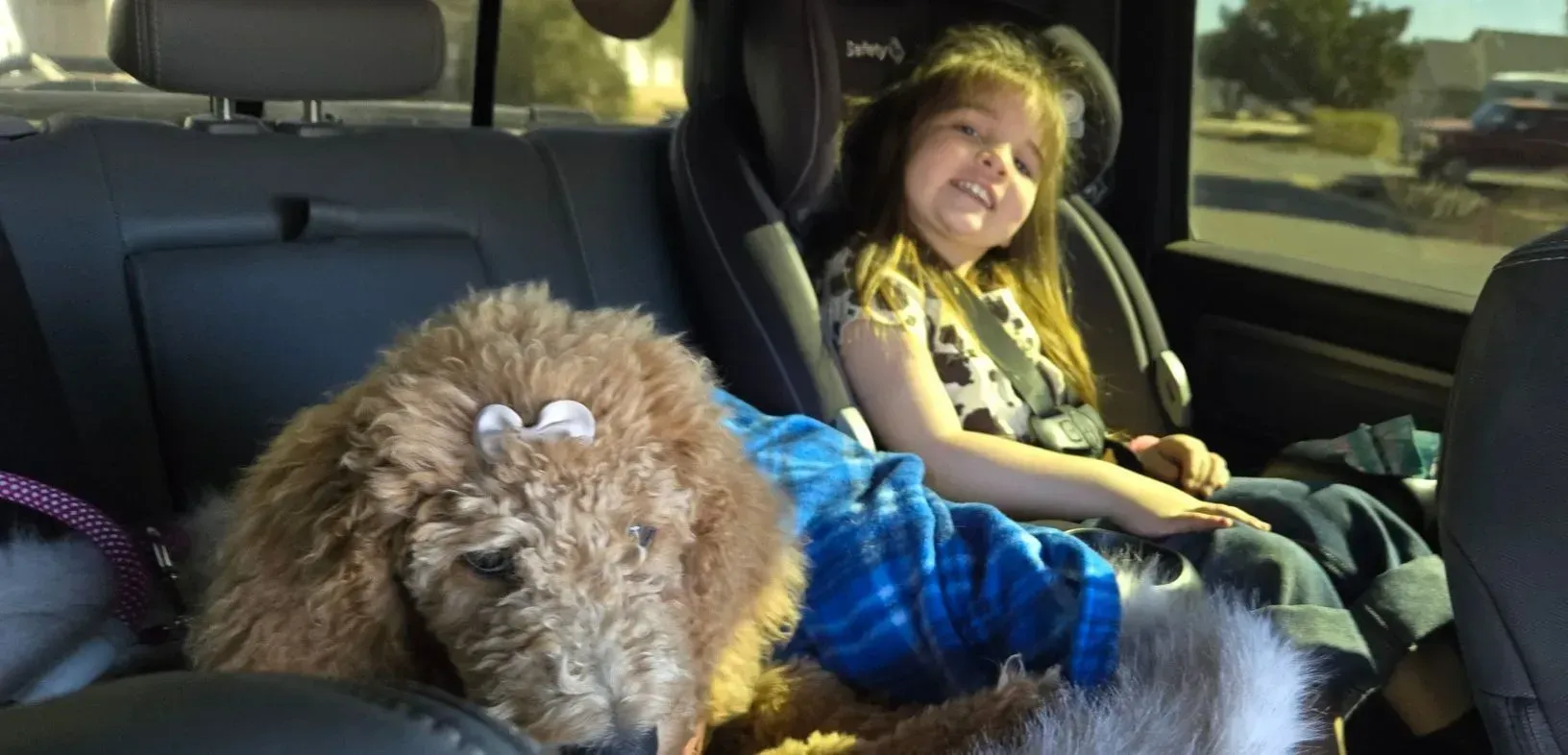 Bella is doing great! She’s so sweet and playful. She trains easily. She never cried in her crate and sleeps through the night. We love her so much!